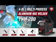 The YWM-200 is a versatile and portable 4-in-1 welding machine that offers quality performance for both hobbyists and professionals. With MIG, Gasless MIG, Lift TIG and Stick functions, this machine can take carbon steel, stainless steel and aluminum wire, and is suitable for 7018/6011 Electrode electrodes. The YWM-200 is compatible with spool guns.